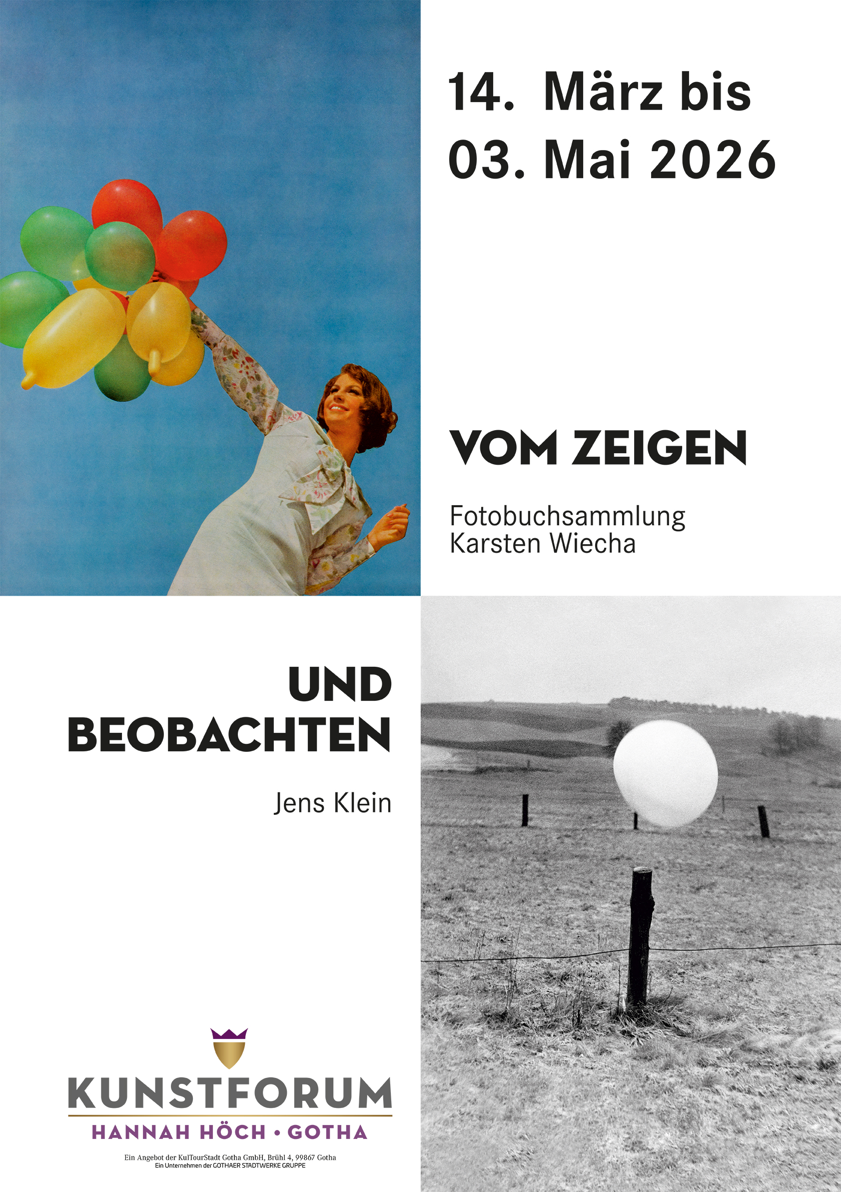 Vom 14. März bis zum 3. Mai 2026 begegnen sich im KunstForum Hannah Höch Gotha unter dem Titel „Vom Zeigen – Und Beobachten“ zwei sehr unterschiedliche fotografische Bildwelten, verbunden durch die Frage, wie Bilder Wirklichkeit prägen und Geschichte